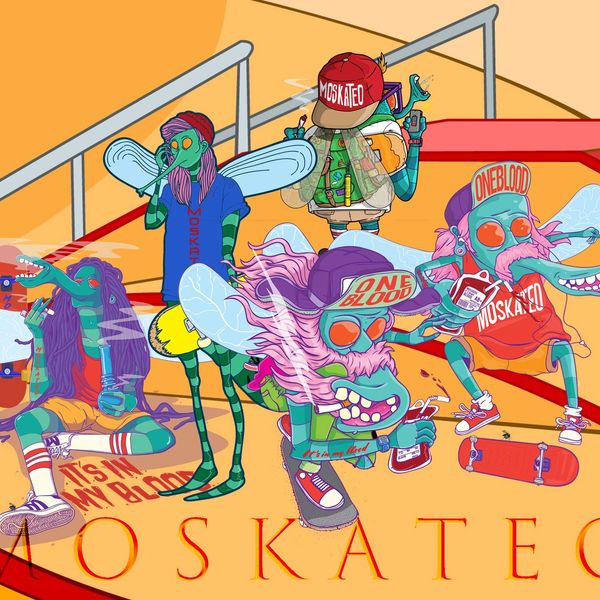 Set in Boston (The God Sector) in this modern time, “MoSkateO” is based on a diverse group of Teenage Humanoid Mosquito Skateboarders who goes by the names Plasma, Vein, Blood Drunk, Chunks, and DRed. Their dream is to turn Pro and become Skateboarding legends like their idols. Personalities clash within the group and other residents in their neighborhood as they are conflicted with bullies, rival skate crews, gangs, police, psychedelic drugs, depression, humans, multi-dimensions, and responsibilities.